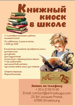 Занятия по субботам с 11.00 до 15.00 часов в школе «Радуга» по адресу: 23, boulevard Jacques Preiss 67000 Strasbourg